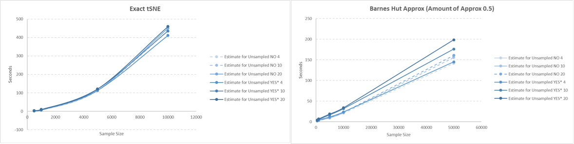 - If the Amount of Approximation is set to 0, the Barnes-Hut method is virtually identical to the Exact t-SNE method.