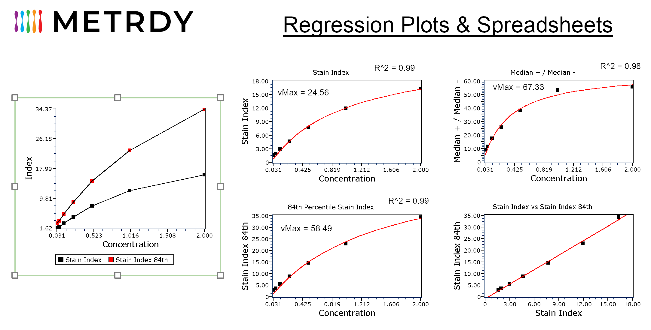 With a few user actions, the Universal Antibody Titration Layout auto-generates the following regression plots: